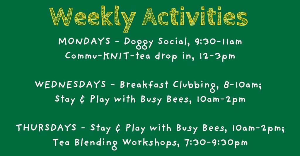 The cafe runs regular weekly activities which include the following:
